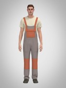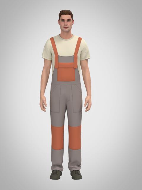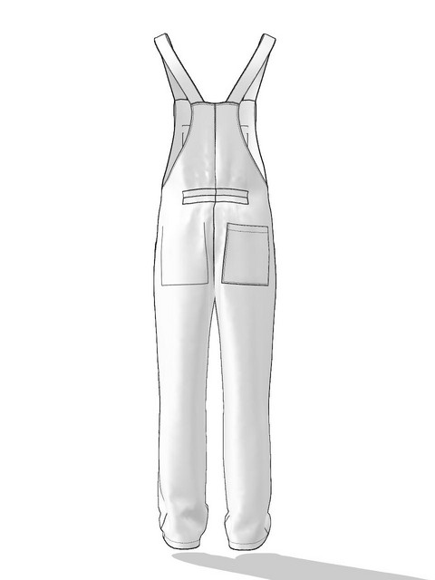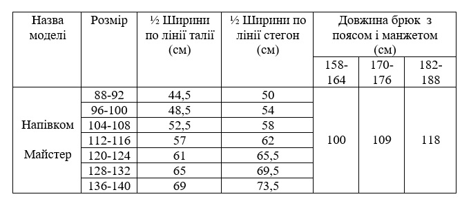 На брюках передніх половинок - кишені накладні, наколінник з липучкою по низу. В средньому шві- гульфик на гудзиках. Застібки в верхній частині бокових швів на гудзиках.
