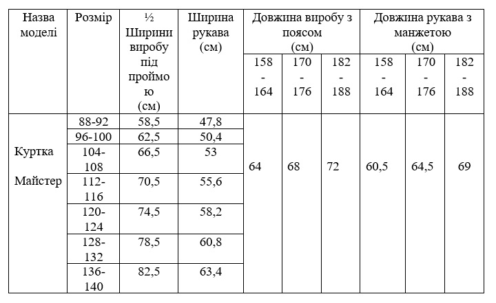 Комір відкладний. Рукав вшивний, на манжеті з гудзиком.