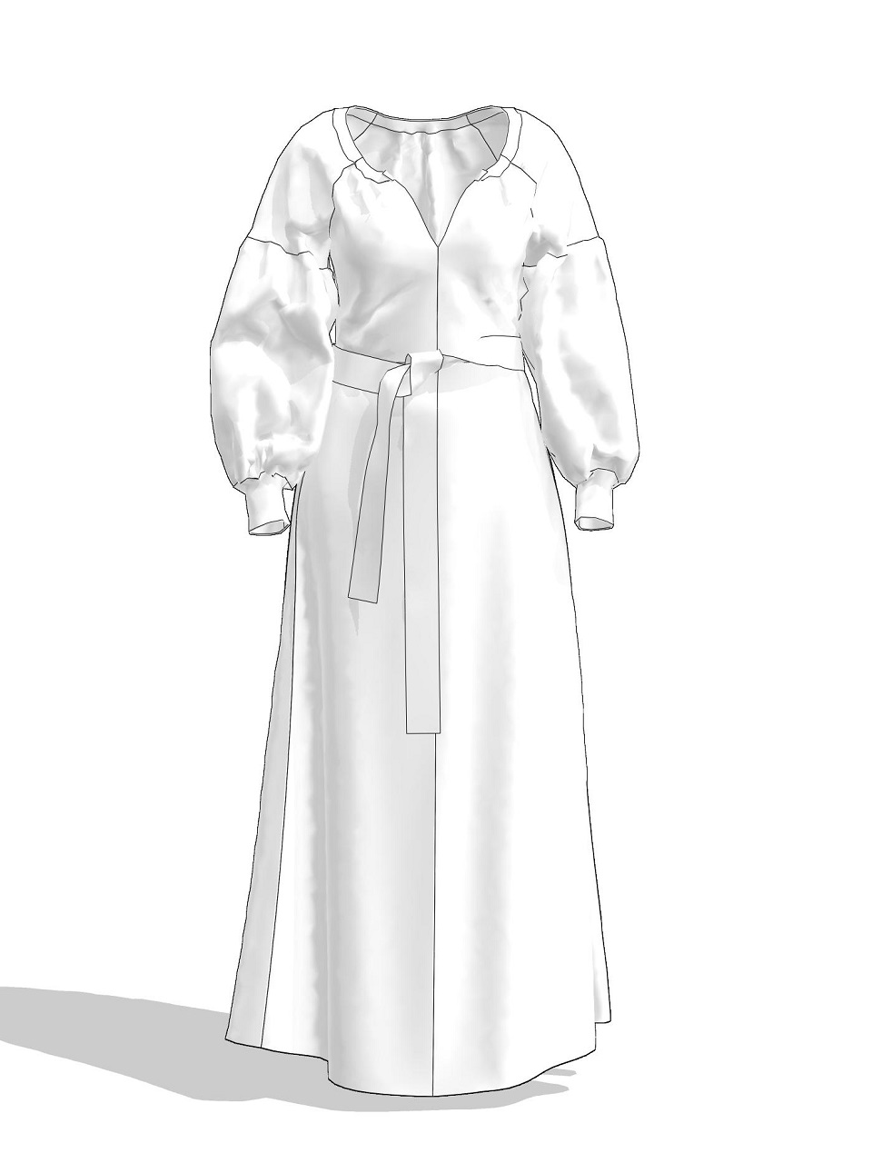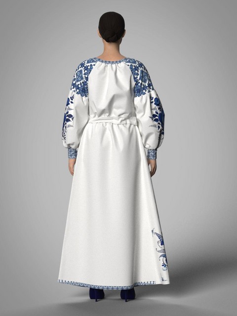 Сукня довжиною максі, вільного силуету, трапецивидна.