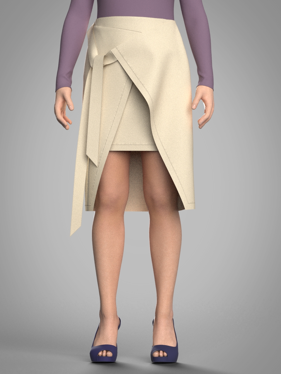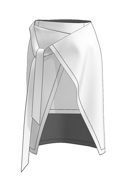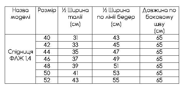 Задня половинка спіднці має дві виточки, верхній зріз оброблений обтачкою.