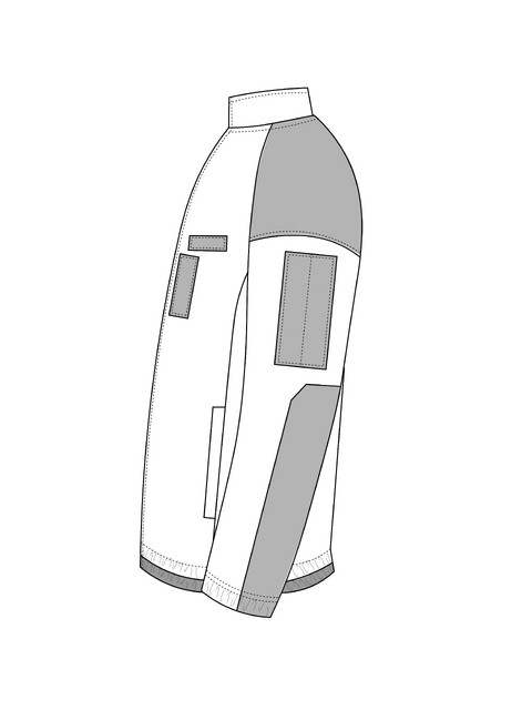 Пілочки з відрізними боковими частинами. На пілочках в бокових швах розміщені зовнішні бокові кишені, які закриваються за допомогою застібок–«блискавок».