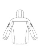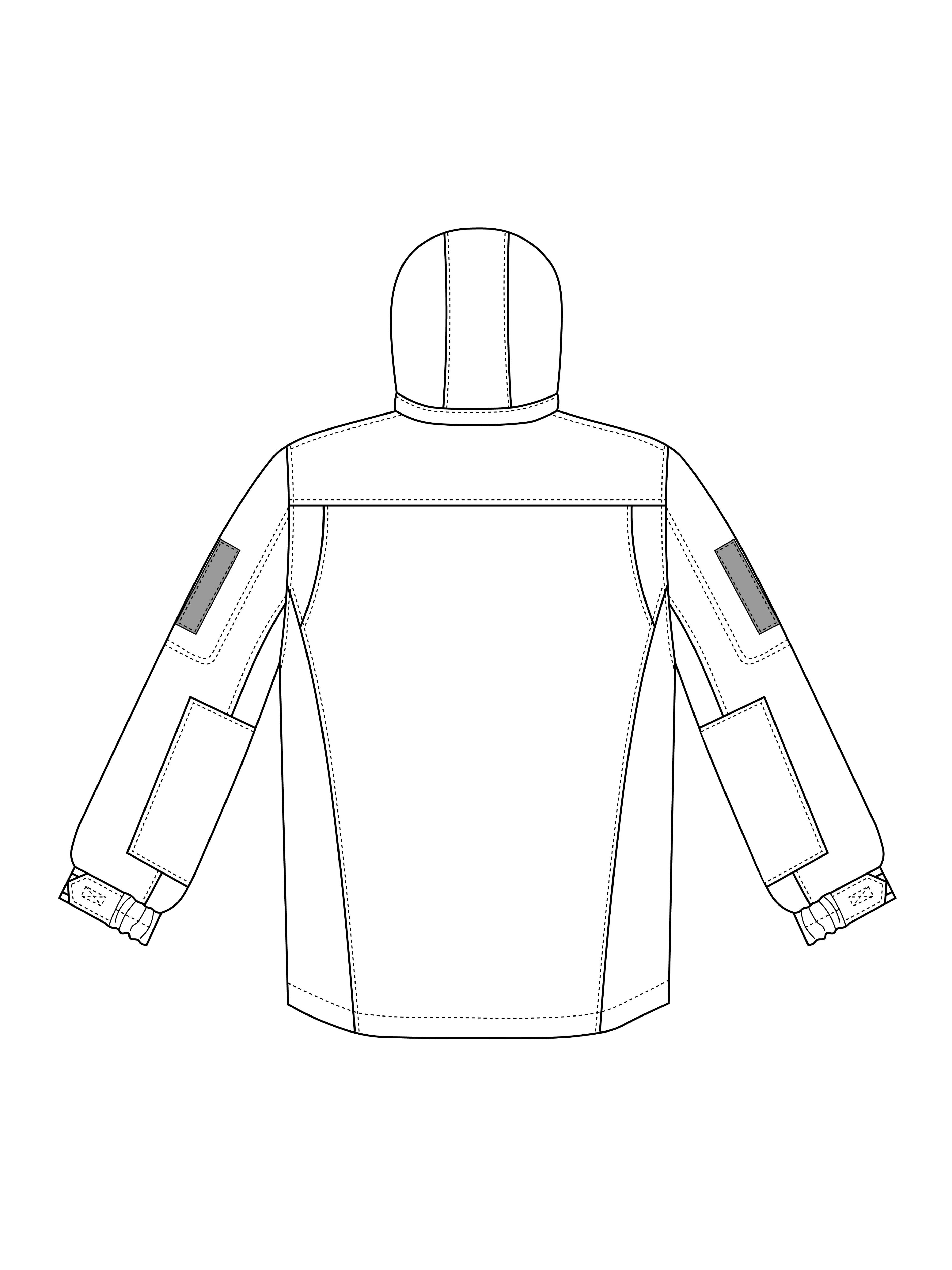 двома рядами еластичної стрічки, з патою. У ділянці ліктів нашиті посилюючі накладки. На передній деталі рукава розміщена прорізна кишеня на застібку-блискавку.