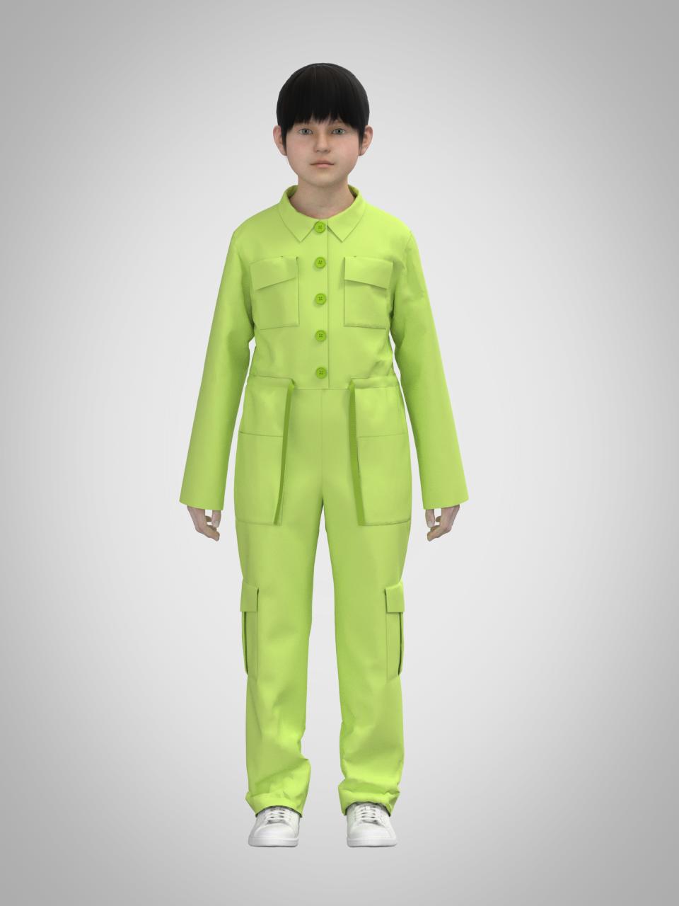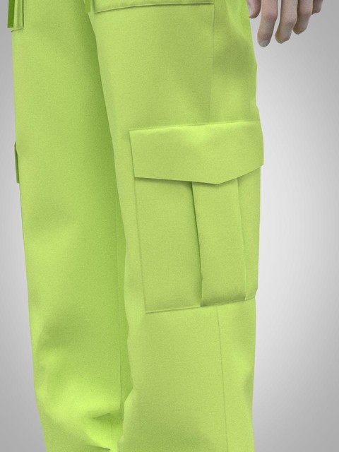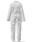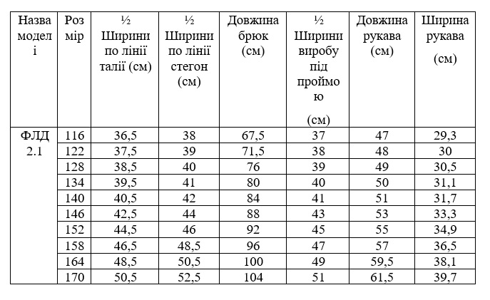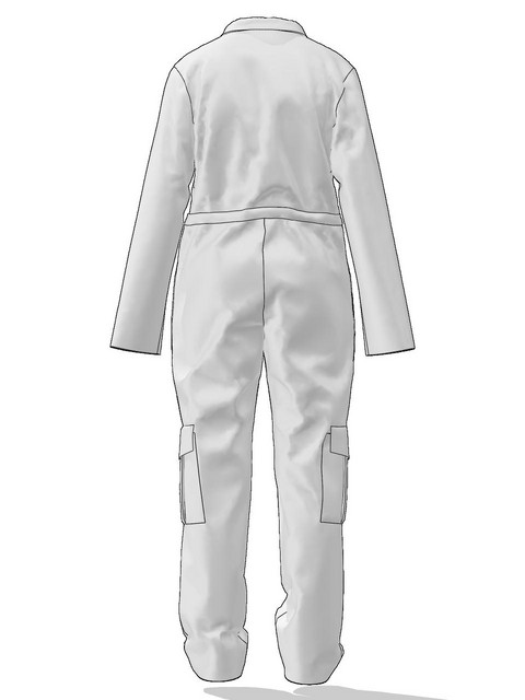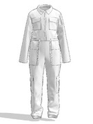 На передніх половинках брюк верхні накладні кишені. Нижні накладні кишені, по типу *книжка* з клапаном, на бокових швах. На нагрудній частині накладні кишені з клапаном. По лінії талії куліса для регулювання приталеності. Рукав довгий, втачний. Верхня частина спинки цільнокроєна. Комір відкладний.