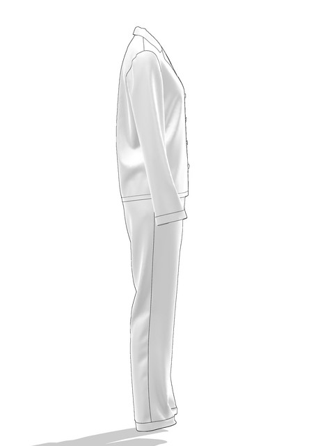 Рукав втачний, довгий. Низ рукава оброблений притачною манжетою.