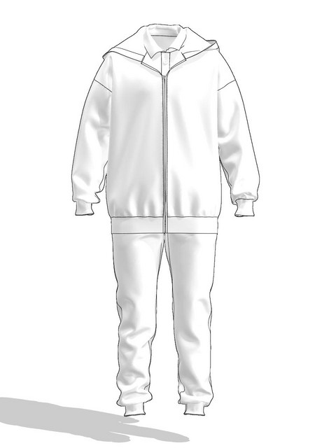Низ брюк обрабатывается трикотажной манжетой.