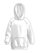 Полочка и спинка сплошные. На полочке накладной карман-кенгуру. Рукав, реглан, длинный, на пришивной трикотажной манжете.