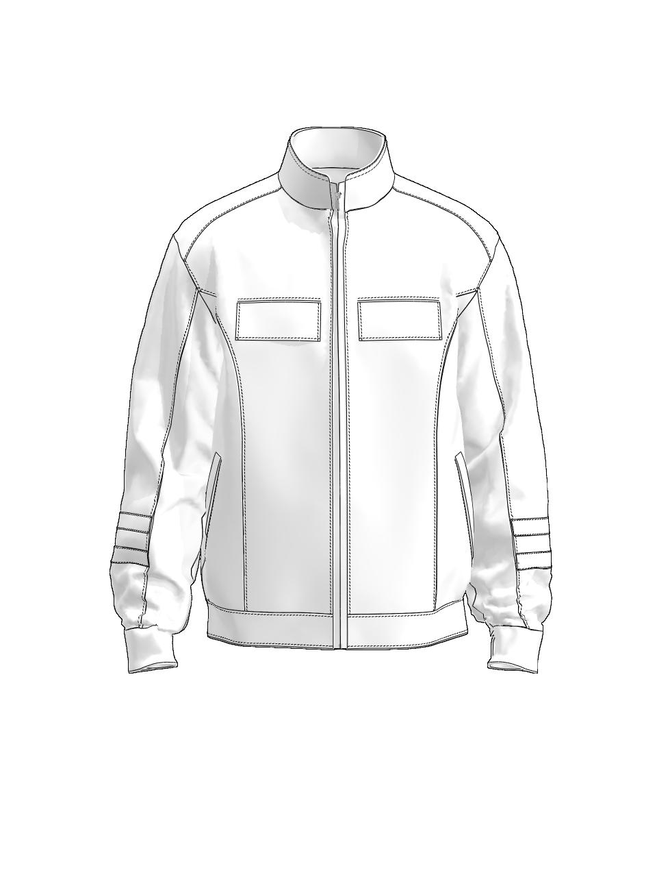 Нагрудные карманы в листочке с клапаном, нижние карманы в листочке расположены на бочках передних половинок.