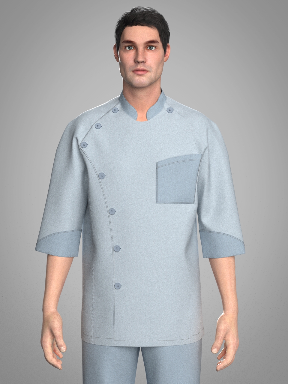 Застежка смещенная на пуговицах. Карман накладной, нагрудный с левой стороны.