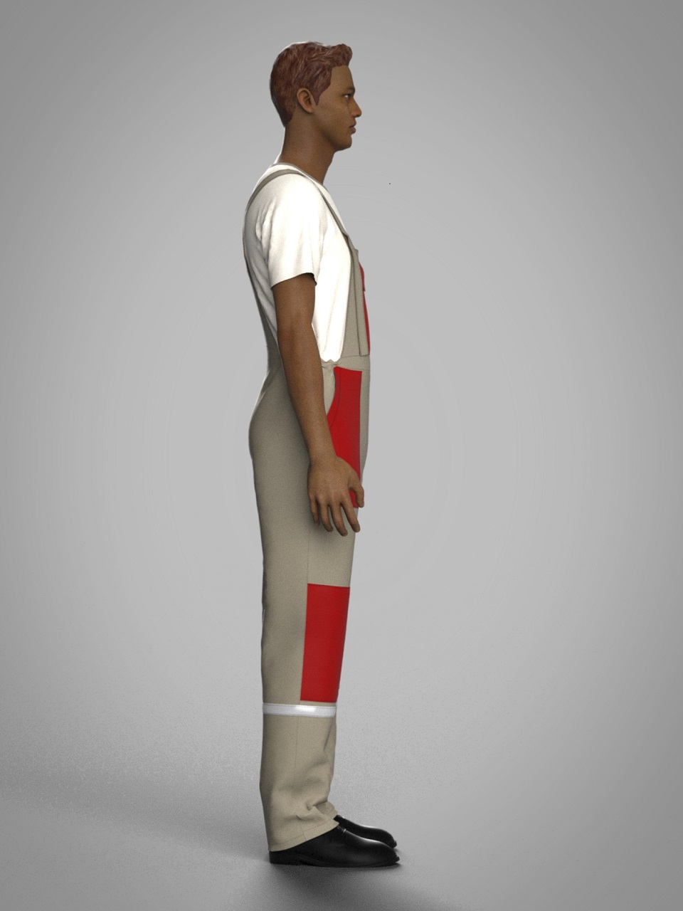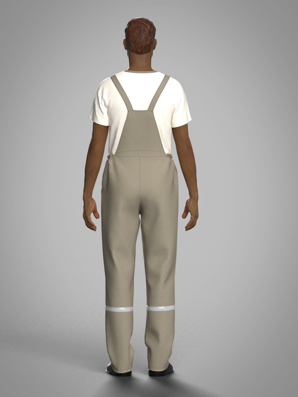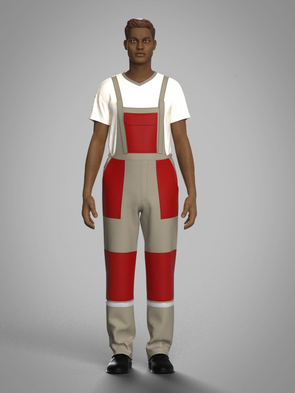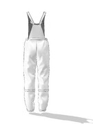 Полукомбинезон прямого силуэта, на бретелях. На передних половинках брюк накладные карманы со скошенным входом, гульфиком и откосом. Наколенники настроечны по верхнему срезу и на липучке по низу. На нагрудной части накладной карман с клапаном. Верхний край брюк отделан приточным поясом, стягивающимся на резинку в боковой части. К кокетке спинки и нагрудной части крепятся бретели.