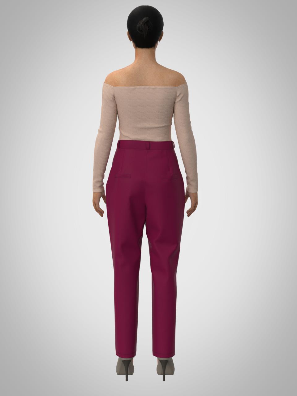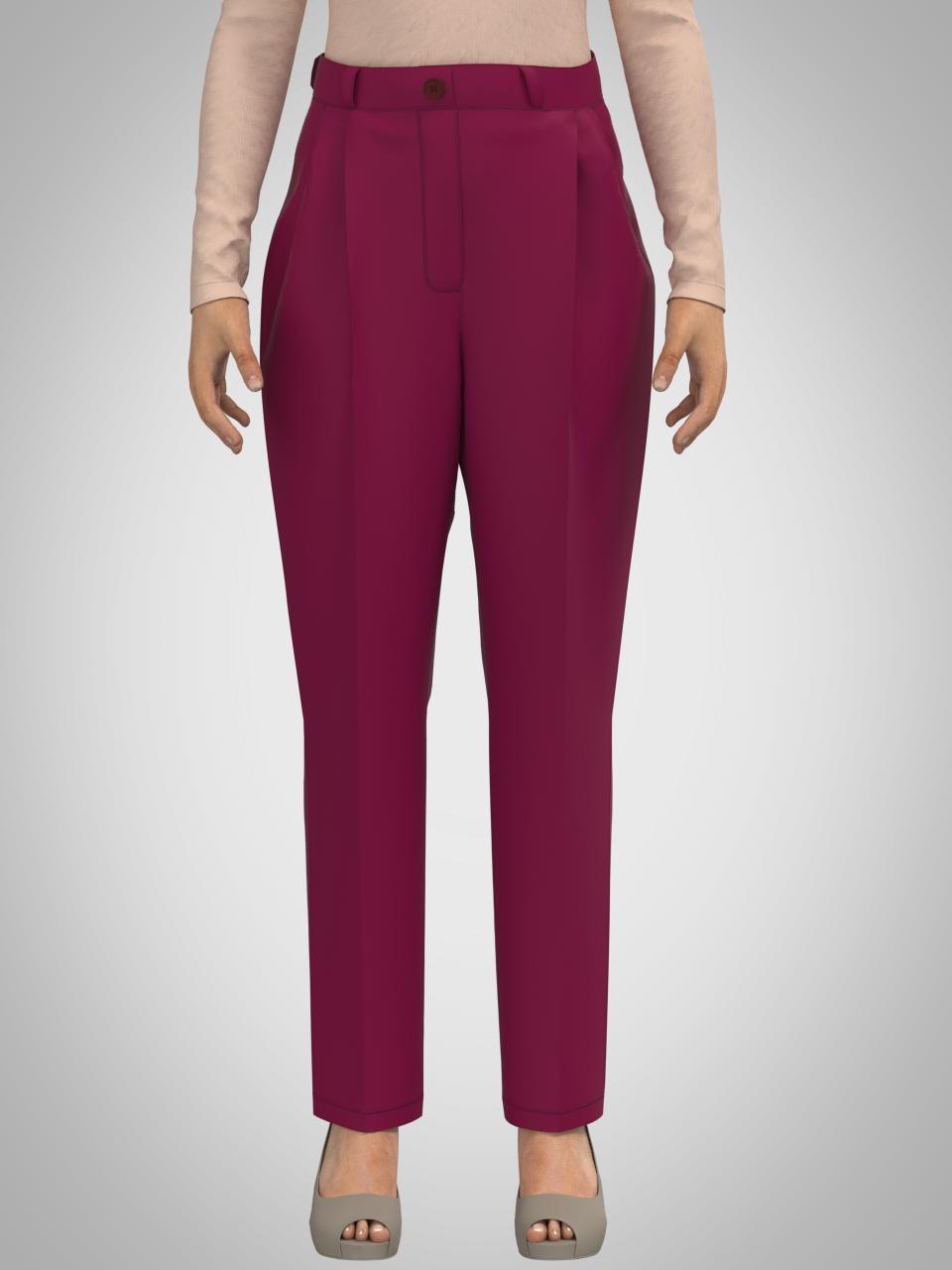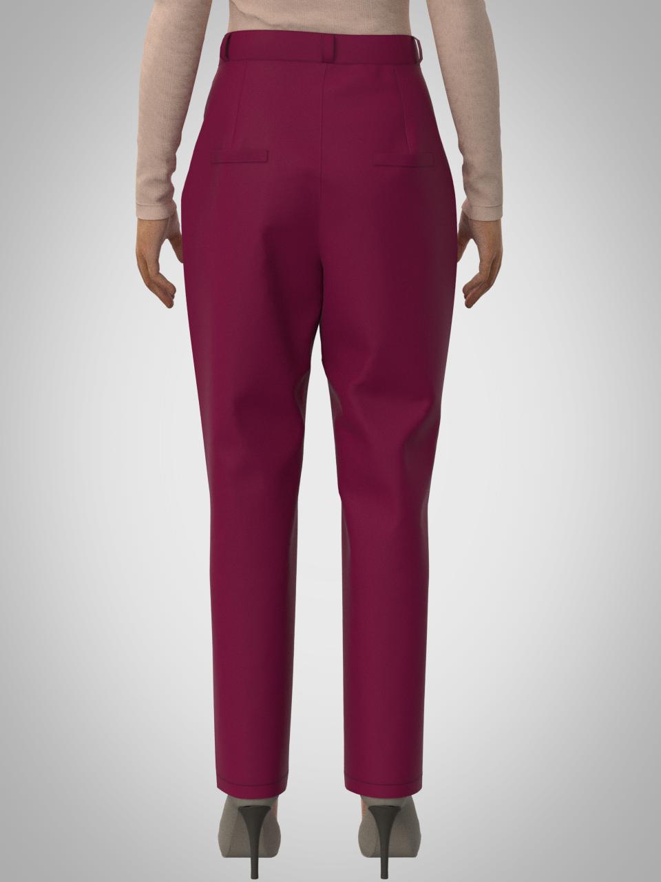 Верхний срез брюк отделан приточным поясом и хомутиками для пояса.