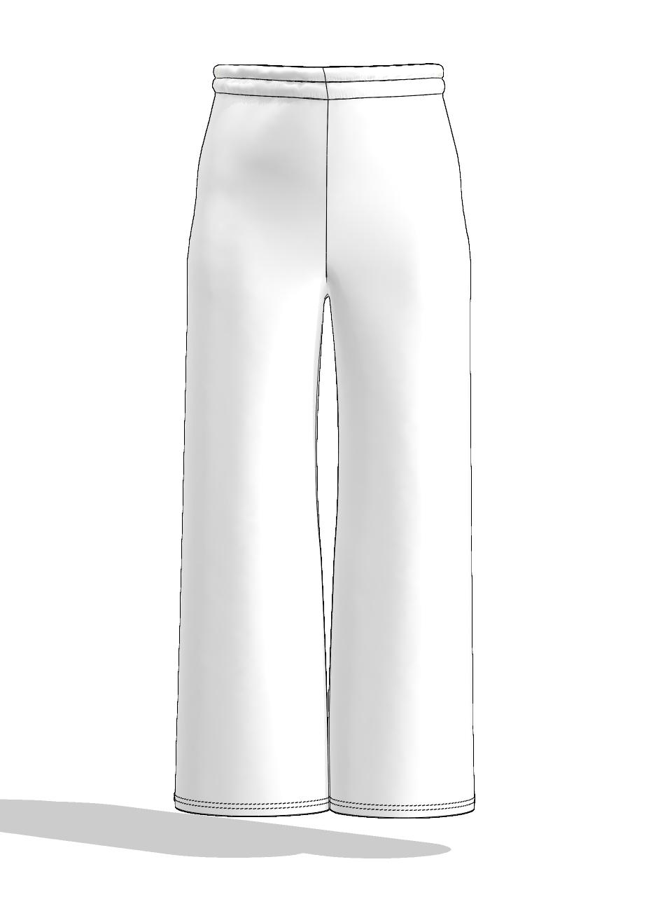 Брюки без бокового шва с цельнокроенным поясом на резинке шириной 4см.