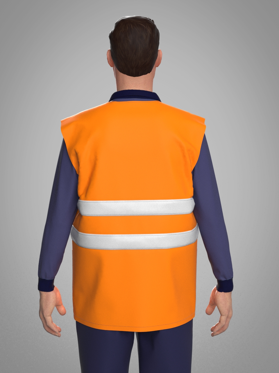 На спинці та пілочках настрочені по дві горизонтальні світловідбиваючі смуги шириною 5 см.