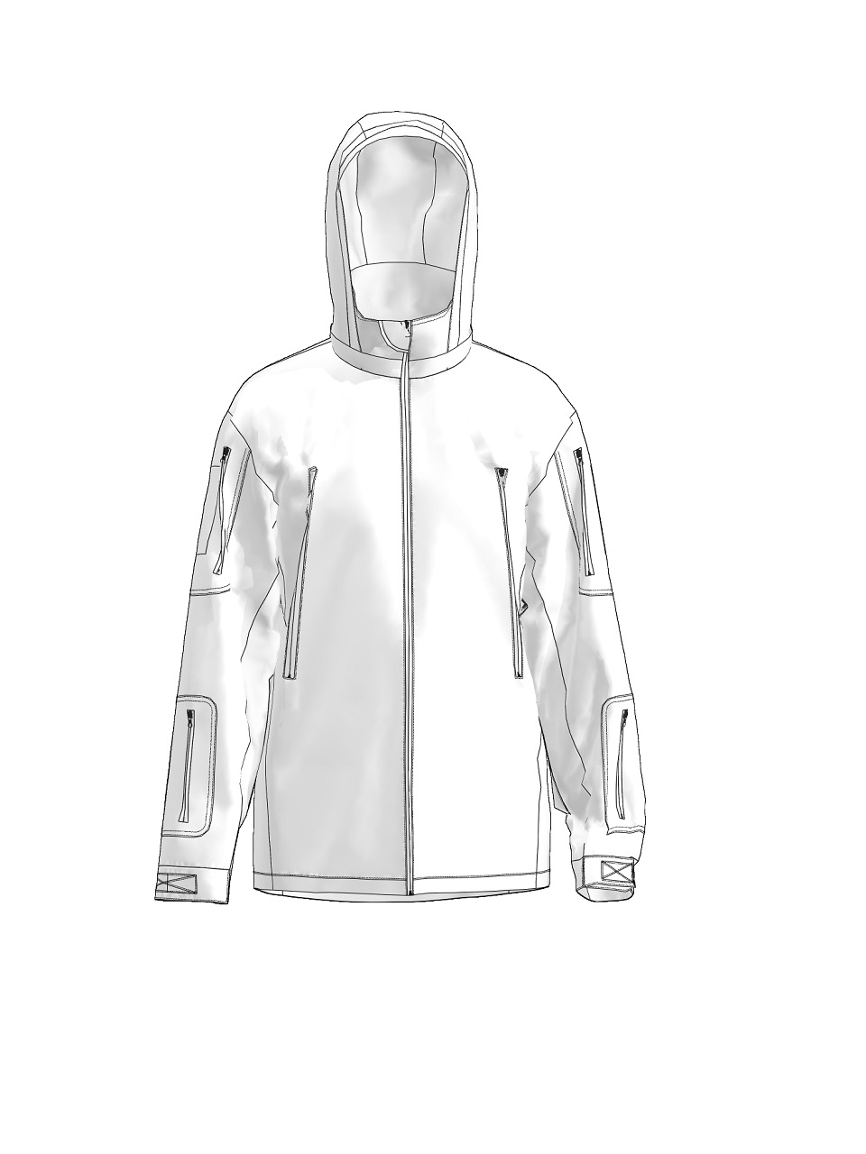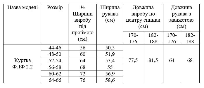 Рукав втачний, карман на передпліччі, на лівому рукаві карман в нижній частині. Регульовані манжети на зап'ясті.