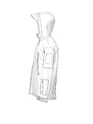 Комір стійка. Капюшон складається з трьох частин.