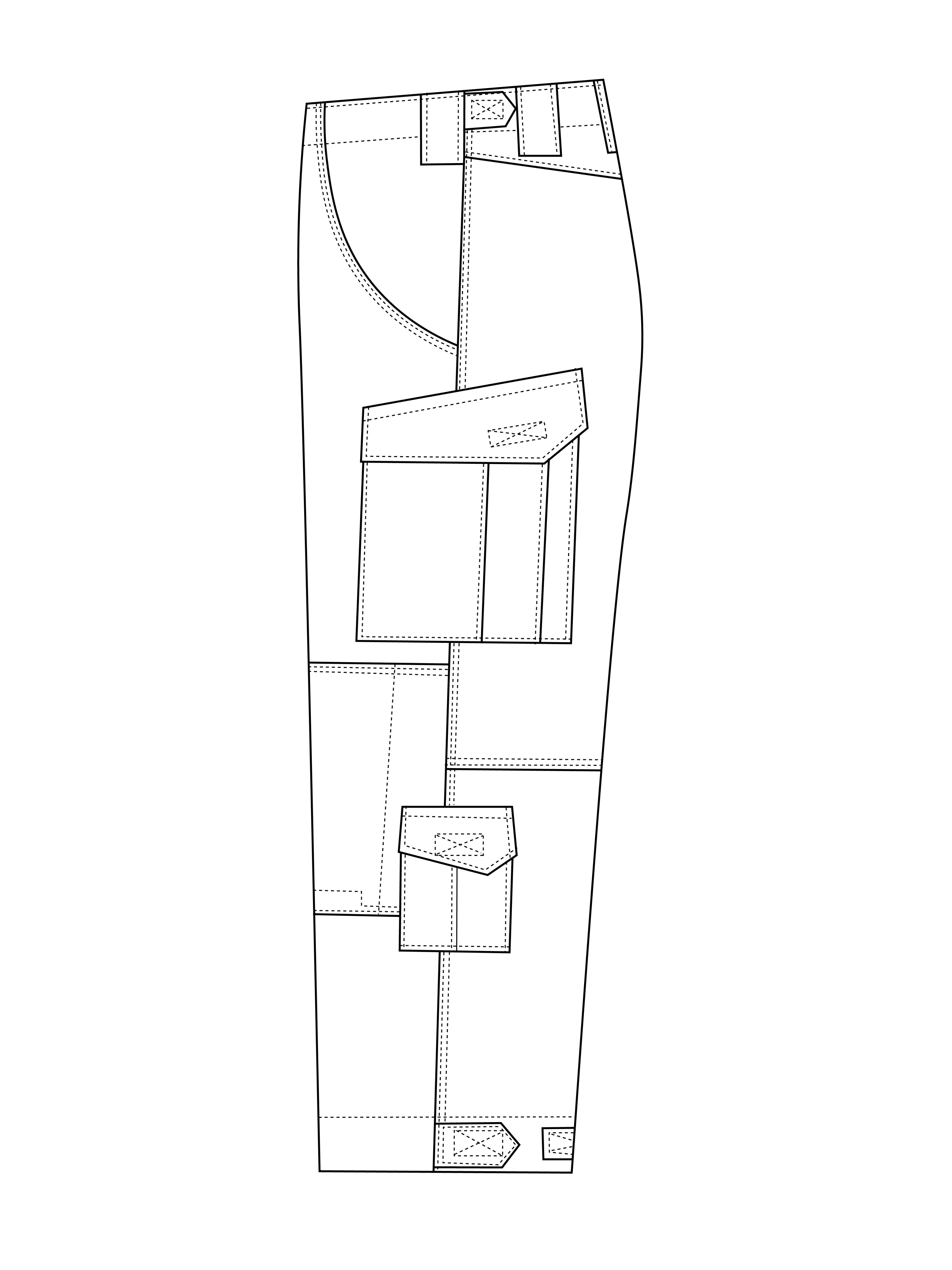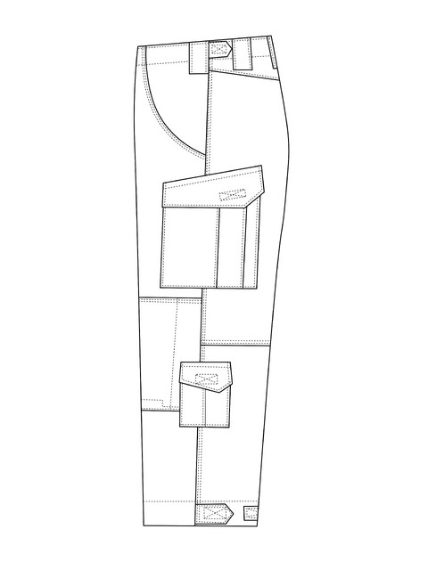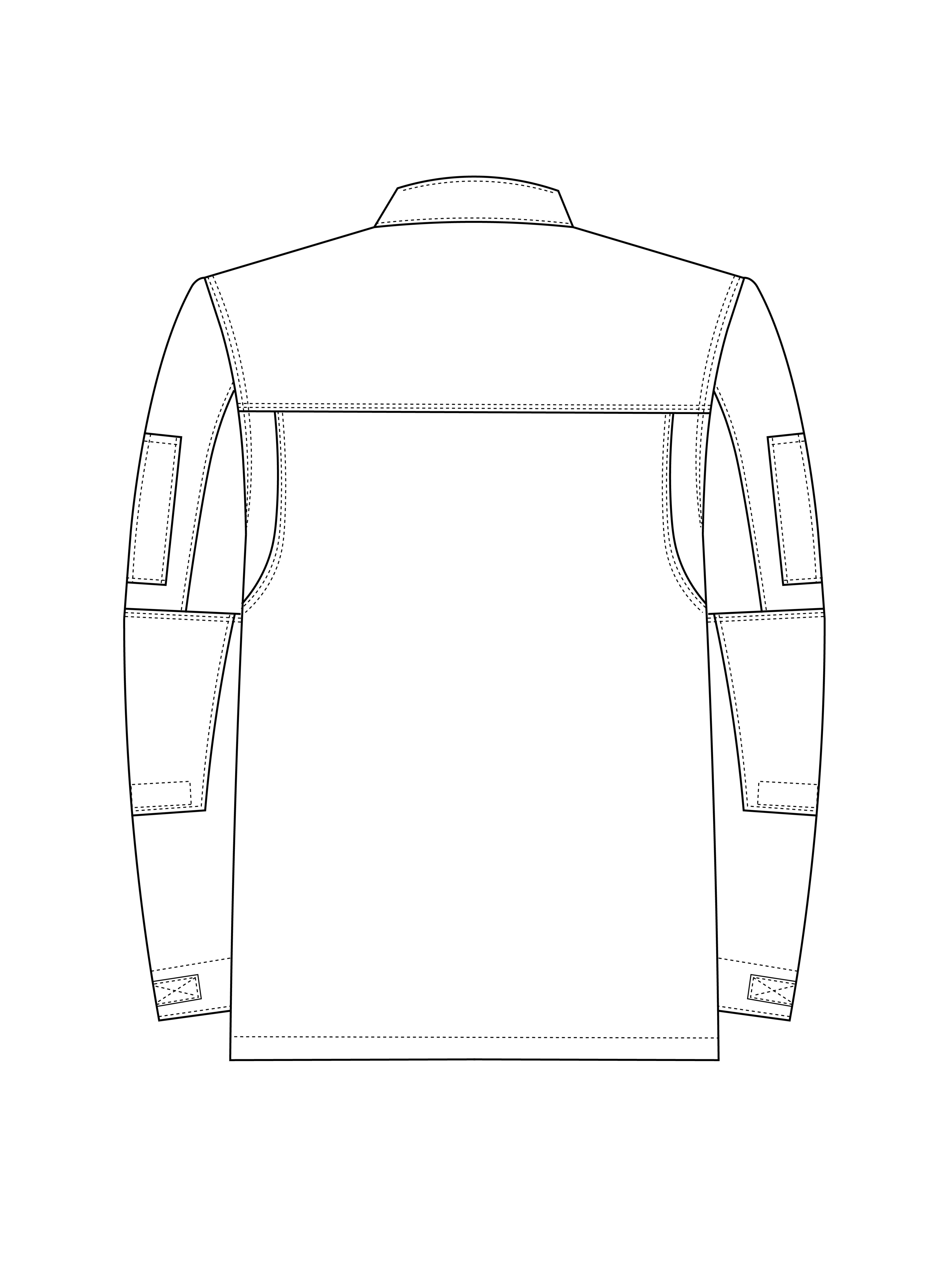 Пілочки з відрізними кокетками та відрізними нижніми частинами. Середні частини пілочок утворюють кишені з двома входами-попереду та збоку. На кокетках над кишенями нашиті смужки текстильних застібок для кріплення ідентифікаторів.