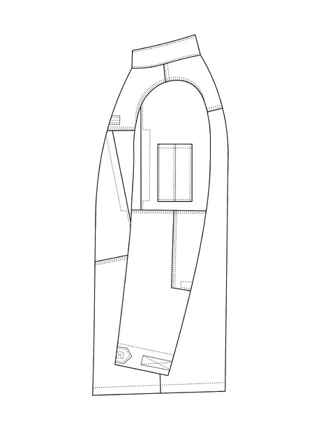 Рукава сорочкового покрою складаються з верхніх і нижніх частин. Верхні частини рукавів складаються з передніх, середніх, та задніх деталей. Середні деталі верхніх рукавів мають кишені,що застібаються на тасьму «блискавку»