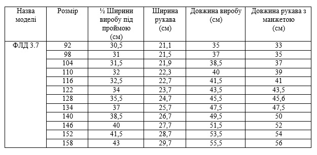 Пілочка і спинка суцільні, рукав втачний довгий на притачній манжеті