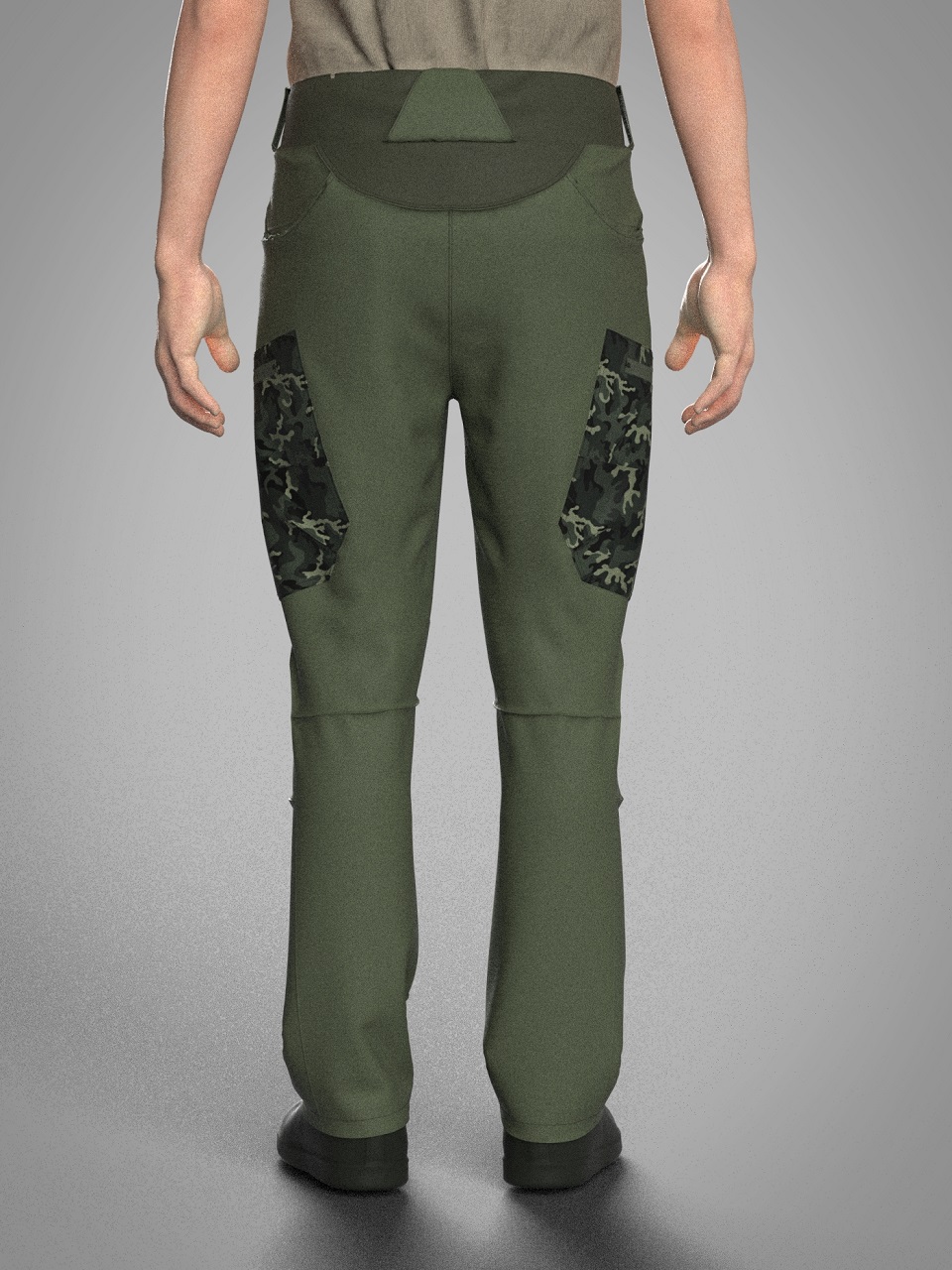 Нижня частина цільна з переходом на задню половинку. В області коліна чотири виточки.