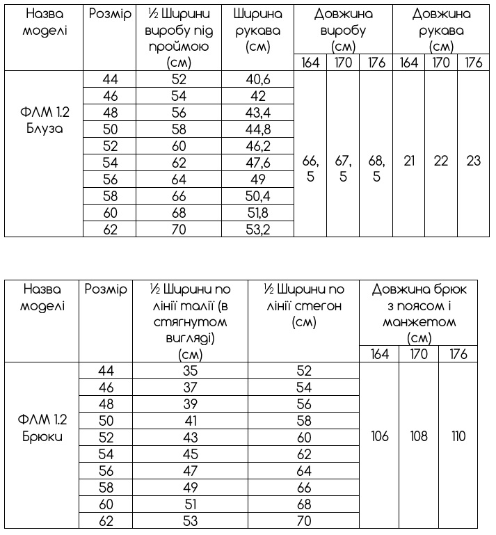 Складається з блузи та штанів.