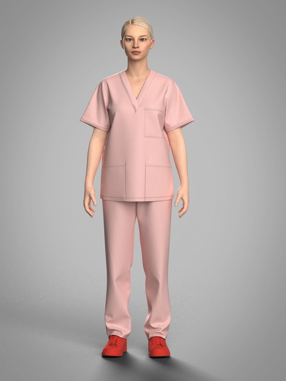 Кишені накладні. Одна кишеня нагрудна, дві кишені нижні. Рукав короткий.